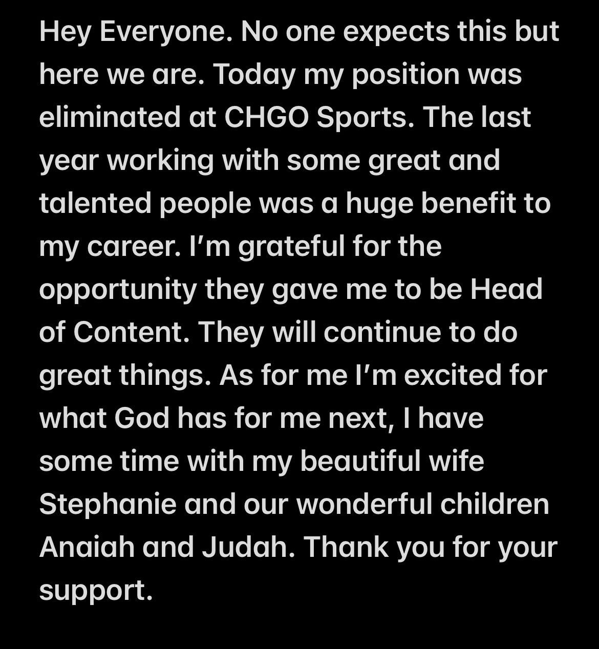 Being laid off sucks. Being laid off with a wife and two small kids sucks even worse. Being laid off on the same day you’re putting your long-time dog down feels like overkill. But that was my day on November 21st, 2025, after being let go from CHGO, a day I’ll never forget. This was my first time being laid off. NBC Sports Chicago dissolved, so the whole channel was let go. This was my first time being told that my individual skillset, personality, and contributions will no longer be needed. I had progressed in my career with only an upward trajectory. I haven’t been out of work since I started working at White Castle as a teenager. This is new territory. After 10 plus years in the business, it’s been officially put on hold.
